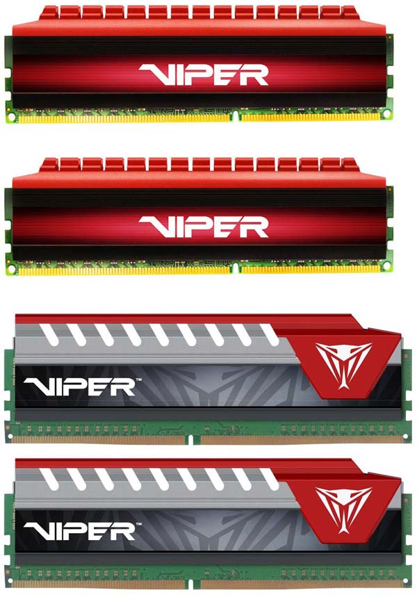 Уже совсем скоро в продажу попадут наборы оперативной памяти DDR4 именуемые Viper 4 и Viper Elite. Это 16ГБ наборы (2x8ГБ), тактовая частота которых составляет 3733МГц, Patriot утверждает, что оптимально использовать эту память в компьютерах с материнскими платами на базе чипсетов X99 и 100-й серии от Intel.