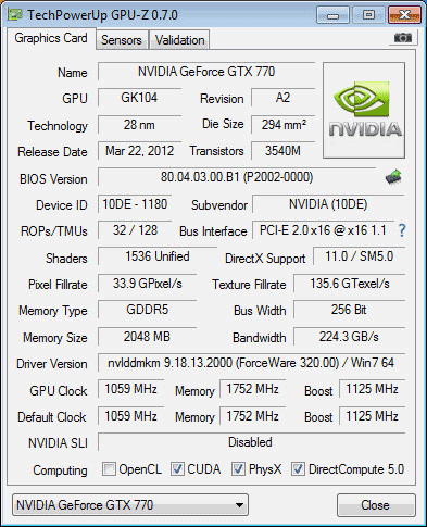 Тем не менее никто не мешает немного схитрить и перешить (с помощью Nvflash) своей референсный GTX 680 BIOS'ом якобы от GTX 770. Взять BIOS GTX 770 можно по ссылке. Разумеется, не всё так просто, уважаемые читатели.