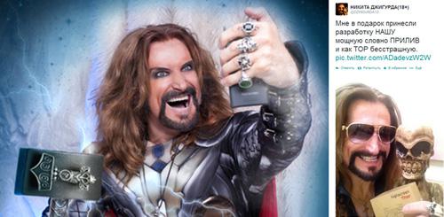 Что касается Никиты Джигурды, то еще пару лет назад мы планировали привлечь знаменитость такого масштаба к нашей деятельности. И наконец смогли воплотить эту идею. Посмотрите сами, как отлично он вписался в образ скандинавского бога для рекламы смартфона Highscreen Thor!».