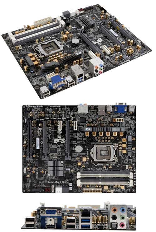 Elitegroup Computer Systems (ECS) представляет свою первую материнскую плату с поддержкой Thunderbolt из новейшей серии материнских плат Black Series Z77H2-A5X Deluxe, основанных на чипсете Intel® Z77. Серия Black Series была разработана специально для самых опытных пользователей и оверклокеров, и плата Z77H2-A5X Deluxe полностью отвечает их запросам. В ней использованы высококачественные полупроводниковые конденсаторы, тройное золотое покрытие и применены устойчивые к нагрузкам радиаторы и теплотрубки.