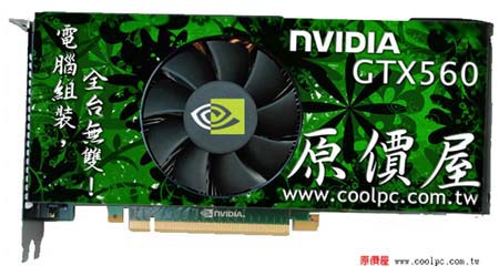 С тайваньского сайта CoolPc появились фотографии какой-то их, т.е. азиатской версии GTX 560 Ti. В ней нам важно не оформление (которое, по некоторым сведениям, нарисовано поверх стандартного чёрного), а референсный дизайн печатной платы и нетронутые тактовые частоты.