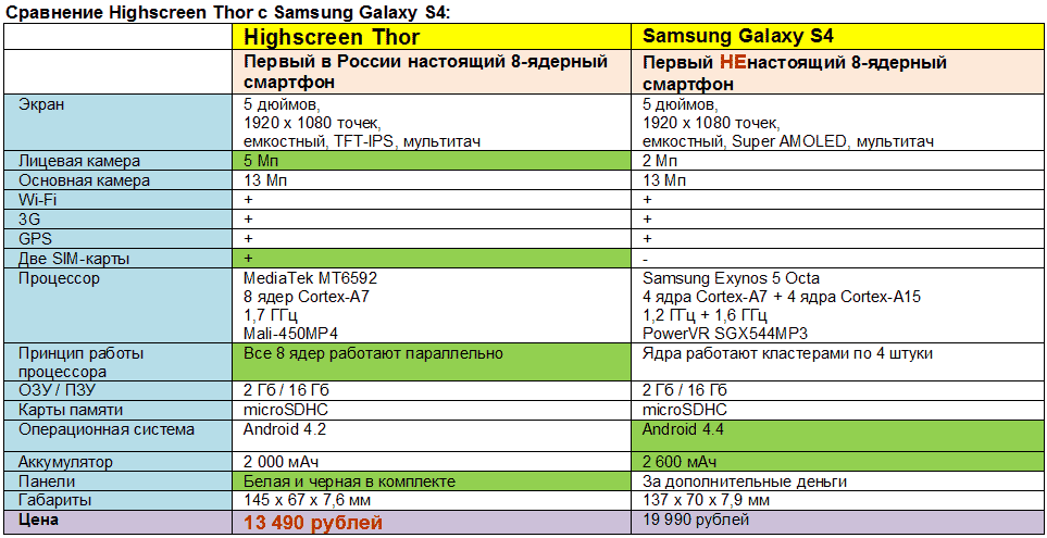 А что у конкурентов? Почему именно Highscreen? Для понимания вопроса: смартфонов c полноценными 8-ядерными процессорами пока нет ни у Samsung, ни у HTC, ни у LG, ни у Motorola, ни у Apple. Последняя вообще до сих пор сидит на 2 ядрах и в ус не дует. Так-то!