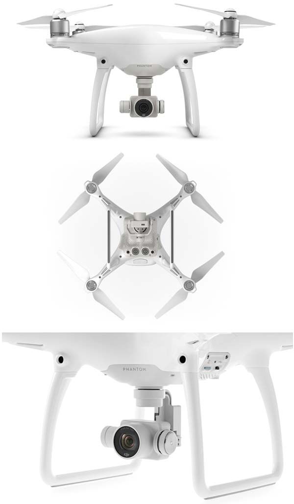 Устройство PHANTOM 4 оснащено системой обхода препятствий (предотвращения столкновений), функционирующей на расстоянии от 0.7 до 15 метров. В камере дрона используется 12МП сенсор с диафрагмой f/2.8 и 94° полем зрения. Решение снимает видео в следующих режимах: