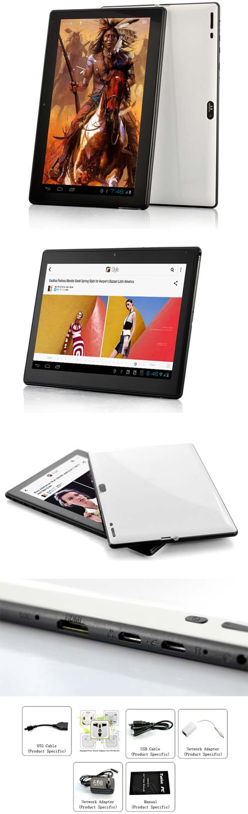 Планшетник Cherokee обладает 10.1" экраном с поддержкой 10-и точечного Multi-touch, разрешение дисплея составляет 1024x600. Внутри изделия трудится SoC Amlogic CORTEX A9, у которой четыре ядра, функционирующих на 1.2ГГц тактовой частоте. Объём оперативной памяти равен 1ГБ, а встроенной - 8ГБ.