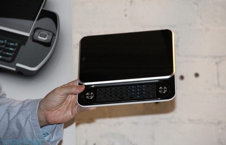 Данный планшетник работает на процессоре Oak Trail, имеет 9-и дюймовый экран с разрешением 1024х768, 3МП камеру, стилус, но главной "фичей" устройства является съёмная QWERTY клавиатура. Работает данный компьютер под управлением Windows 7. Девайс можно юзать как в горизонтальном, так и в вертикальном положении. Если припрёт посмотреть телевизионные программы, то благодаря нужным портам в наличии, безо всяких сложностей это можно будет организовать. Конечно же, есть поддержка WiFi, всё как полагается.