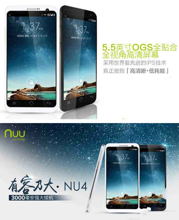Как бы там ни было, устройство NU4 является планшетофоном, у него 5.5" IPS OGS экран с разрешением 720p, объём оперативной памяти равен 1ГБ, места для файлов пользователя выделено 8ГБ и его можно расширить. Основой изделия стала некая 4-ядерная SoC. Тыловая камера имеет 8МП сенсор, фронтальная - 5МП, фаблет поддерживает связь WCDMA/GSM, имеет два слота для SIM карт. Цвета - чёрный и белый, рамка по краям корпуса сделана из металла.
