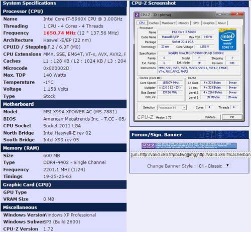 | Vivi частота оперативной памяти DDR4 Проверка - Частота ядра: 2201МГц - Материнская плата: MSI X99 XPOWER AC - Процессор: Intel i7-5960X |