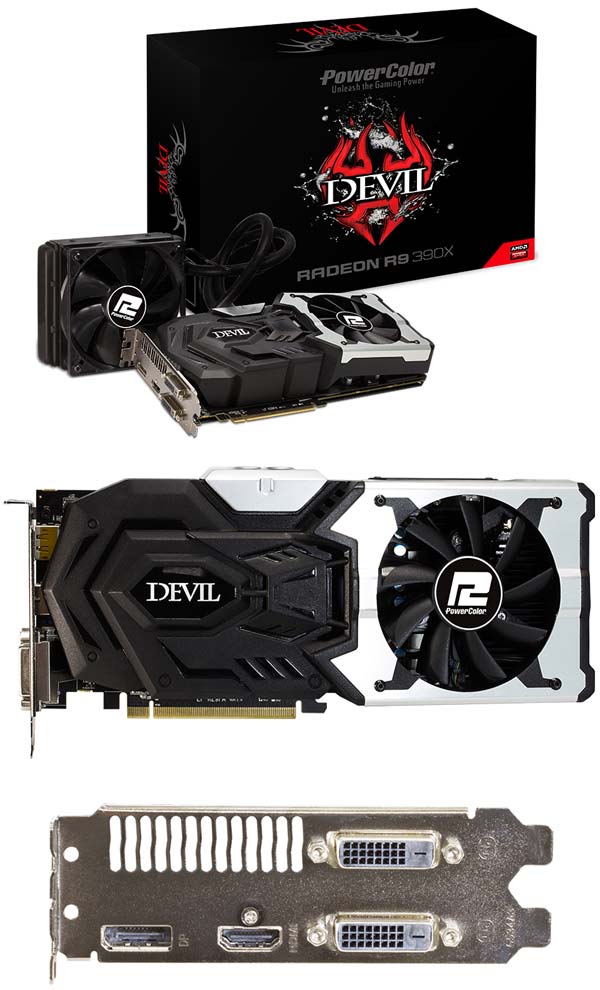 Новинка именуется DEVIL R9 390X, обладает 8ГБ GDDR5 памяти, работающей на тактовой частоте 6100МГц и имеющей 512-битную шину. Графическое ядро функционирует на тактовой частоте 1100МГц, подключается видеокарта в слот PCIe 3.0 x16, обладает видеовыходами DVI-D DL (2), HDMI и DisplayPort.