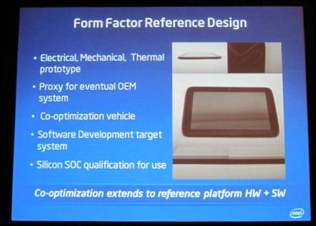 Сообщается, что у так называемого Medfield Tablet Platform одно х86 ядро, работающее на 1.6ГГц, 1ГБ LP-DDR2 память, чип WLAN/Bluetooth/FM Radio неизвестного производства, 10.1" дисплей с разрешением 1280х800, а также ридер для eMMC/micro-SD карточек. Самое важное, что нам немного открыли завесу тайны над производительностью этого решения, работавшего под управлением Android 3.x (в финальных версиях продукта будет 4.х).