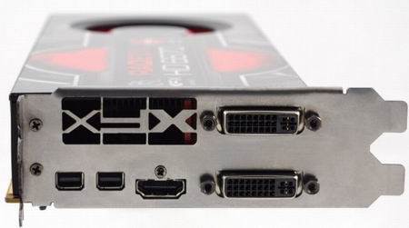 Характеристики по-прежнему до конца неизвестны, потому я их перечислять не буду (советую ознакомиться с этим материалом, если Вы его ещё не читали), скажу только, что новинка имеет двухслотовую систему охлаждения, два 6-и пиновых коннектора питания, поддержку 2-way CrossFire, 1ГБ GDDR5 памяти (с шиной 256-бит) работающей на 5000МГц и видеовыходы DVI (2), mini DisplayPort 1.2 (2) и HDMI 1.4 (одна штука).