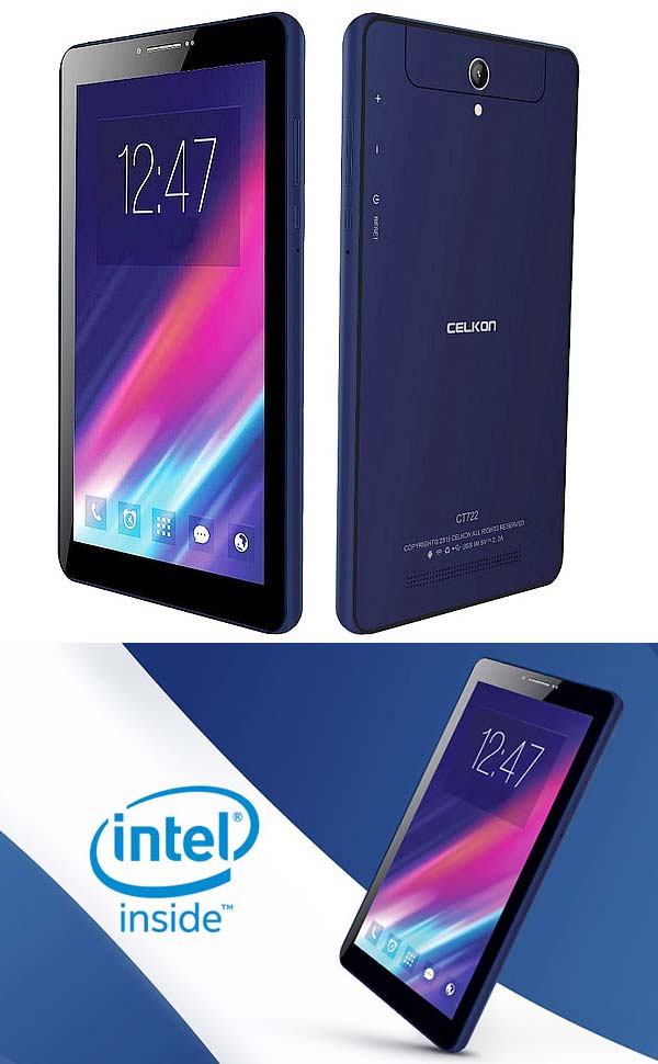 Аппарат именуется Celkon CT722, изделие простое до безобразия. У решения 7" сенсорный Multi-touch экран с разрешением 1024x600, основой планшета стала 1.2ГГц 4-ядерная SoC Intel Atom x3-C3230RK (SoFIA), объём оперативной памяти равен 1 гигабайту, а флеш памяти в наличии 8 гигабайт и её можно (и, чаще всего, нужно) расширить.