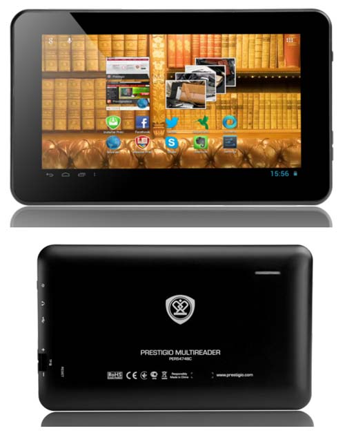 Электронная книга Prestigio MultiReader 5474 – многофункциональный 7-дюймовый цветной ридер на Android 4.1 от Prestigio. Эта операционная система, установленная также на большинстве новых моделей планшетных компьютеров, существенно повышает производительность и скорость работы электронной книги. Мультиридер позволяет не только читать, но и смотреть фильмы, слушать музыку, создавать фотоальбомы. Устройство оснащено 7-дюймовым дисплеем с разрешением 480х800 точек и гигагерцевым процессором Boxchip A13. Prestigio MultiReader 5474 имеет 4 Гб встроенной памяти с возможностью установки карты MicroSD объемом до 32 Гб. Так же, как и к планшету, к электронной книге можно подключить через USB-хост 3G-модем, флешку или внешний жесткий диск, мышку и клавиатуру.