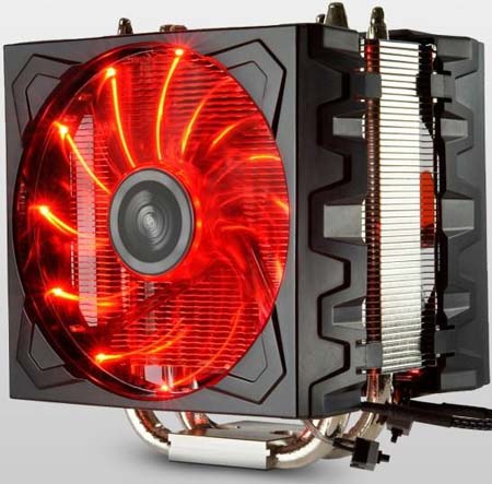 "Фича", используемая в данном безымянном кулере Enermax кличется Vortex Generator Flow - довольно мудрёно, на мой взгляд. Обещается, что пара вентиляторов, работающих в таком режиме, не будут очень шуметь. Также, о новинке известно то, что в ней используется три 8мм (предположительно) теплотрубки и то, что поставляться кулер будет аж в шести вариациях. Наверняка он будет совместим со всем разнообразием процессоров Intel и AMD.