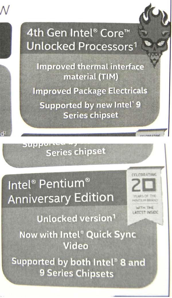 Ресурс TPU, опираясь на данные с Hermitage Akihabara утверждает, что указанные творения Intel будут совместимы лишь с материнскими платами 9-й серии, хотя физически процессоры совместимы и с платами 8-й серии, ибо сокет используется один и тот же - LGA1150. В доказательство нам приводят следующие слайды, на которых видно что кроме системных плат с чипсетом 9-й серии других в списке поддерживаемых Devil's Canyon не значится.