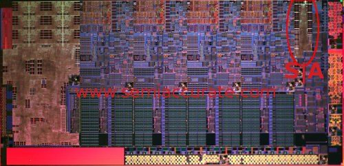 На этом снимке, полученном с сайта SemiAccurate красным обведёна область, где располагается этот чип. Коллеги с западного сайта почти уверены, что скорость кодирования видео будет выше, чем оная у видеокарт GTX480 силами CUDA (а она, если Вы не в курсе, многократно превышает ту, что можно получить используя любой современный процессор). Я в этом сомневаюсь, впрочем лучше подождать выхода процессоров и тогда уже, на основании нескольких не купленных тестов, делать выводы.