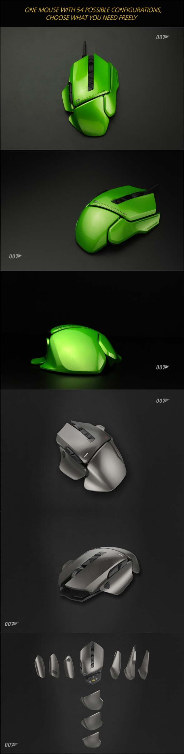 На деле не совсем реальный, т.к. для массового производства мышки James Donkey 007 сейчас собираются денежки на Pozible, не самой известной и популярной краудфандинговой платформе. Изделие представляет собой обычную лазерную мышь с сенсором Avago A9800 и микропереключателями OMRON, выдерживающими по 20 миллионов кликов. Разрешение сенсора достигает 8400 точек на дюйм, максимальное ускорение - 30G.