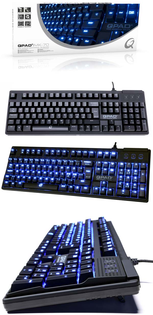 Да, речь идёт о клавиатуре, без которой даже самый мощный игровой ПК не сможет выполнять свои функции (по крайней мере в большинстве игр). Новинка именуется QPAD MK-70, она использует механические переключатели Cherry MX red, подключается через 1.8 метровый оплетённый кабель с позолоченным USB коннектором. Портов USB на устройстве нет, программировать клавиши нельзя.