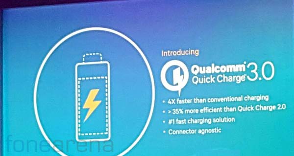 Анонсирована технология Quick Charge 3.0, ныне поддерживаемая двумя новейшими SoC. По скорости она в четыре раза шустрее обычной зарядки, вдвое превосходит Quick Charge 1.0 и на 38% обгоняет Quick Charge 2.0, при этом имея обратную совместимость с ними. Говорится, что реализовать поддержку Quick Charge 3.0 можно используя следующие коннекторы: USB Type-A, USB micro и USB Type-C.