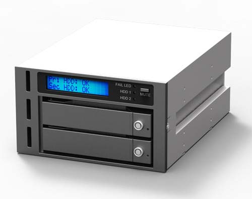 Решение именуется iR2622, представляет собой контейнер для двух 2.5"/3.5" SATA накопителей, который занимает два 5.25" отсека в корпусе. Аппарат обладает ЖК экраном, показывающим статус накопителей, также есть светодиоды, демонстрирующие активность HDD/SSD внутри продукта Raidon.