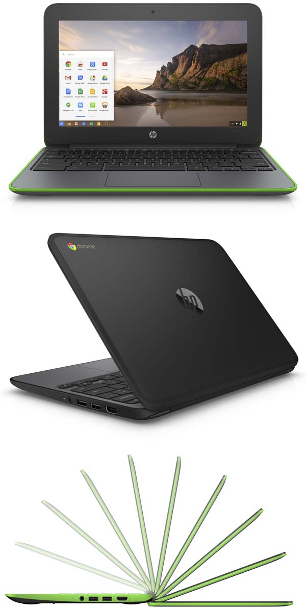 Изделие именуется HP Chromebook 11 G4 EE (Education Edition), представляет собой хромбук с 11.6" экраном, разрешение которого составляет 1366x768. Основой новинки стал двухъядерный процессор Intel Celeron N2840 (2.16~2.58ГГц), производительности которого наверняка хватит на образовательные цели.