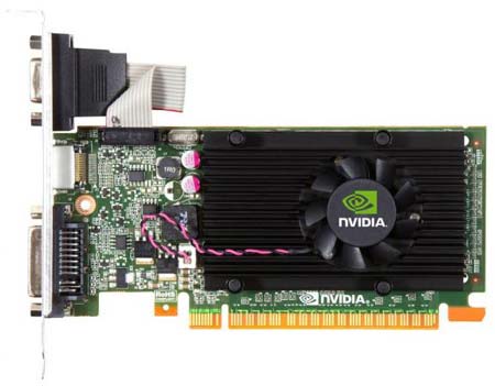 Т.е. предназначение подобных поделок мне понятно - HTPC и иже с ними, но какая-то у меня нелюбовь к "лоу-энду". Впрочем, моё отношение к такого рода видяшкам в данном случае не важно, так что напомню-ка я Вам характеристики новинки: 48 CUDA-ядер, 1ГБ DDR3 памяти с 64-битным интерфейсом, частота ядра/шейдеров/памяти равна 810/1620/1800МГц. Энергопотребление такого решения низкое, как и положено - оно составляет 29 ватт. Из видеовыходов имеются HDMI, D-Sub и DVI, это должно удовлетворить большинство потребителей.
