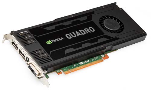- NVIDIA Quadro K4000 - карта класса high-end, способная обеспечить высокую производительность даже в самых ресурсоёмких приложениях. Имеет 3ГБ памяти, поддержку мультимониторного вывода изображения, поддержку 3D и всё это в однослотовом форм-факторе.
