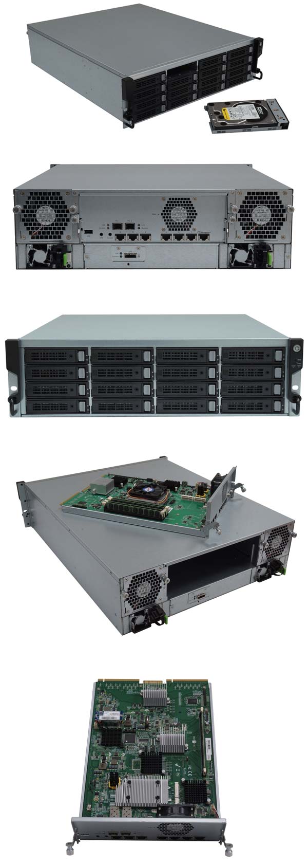 Система TrioNAS LX U300 поставляется в виде базового модуля U300-P10 (7x1GbE, память 16GB ECC) с возможностью расширения памяти (до 32GB ECC) и интерфейсной хост-картой (10Gb iSCSI или 8G FC). Предлагается два форм-фактора: 3U на 16 отсеков и 4U на 24 отсека.
