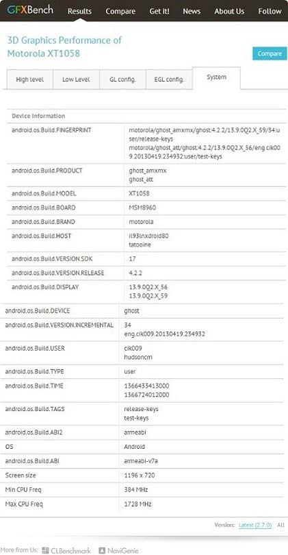 Все эти данные получены из базы данных бенчмарка AnTuTu, хотя источник новости в лице NextPowerUp напоминает нам о том, чтобы мы не считали эти данные истиной в последней инстанции, в конце-концов по ним даже нельзя с точностью утверждать о том, что перед нами спецификации аппарата Motorola X Phone, а не какого-то другого.