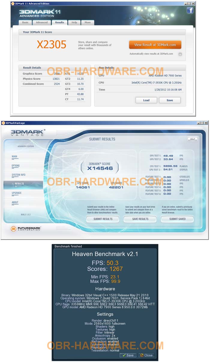 Конфиг был следующим: Asus Rampage IV Extreme, Core i7-3930K @ 4.2 ГГц (BCLK 105), 8ГБ @ 1950МГц CL9. Версия драйверов - 8.950, видеокарта работала на частотах по-умолчанию.