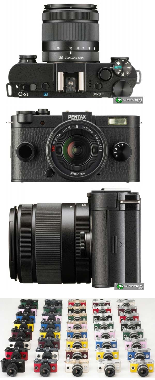 Аппарат имеет название PENTAX Q-S1, обладает 12.4МП 1/1.7" BSI CMOS сенсором, процессором обработки изображения Q Engine, а также 3" ЖК экраном. Устройство обладает показателем чувствительности ISO 12800, имеет механизм стабилизации изображения, осуществляемый гироскопическим сенсором SR (Shake Reduction).