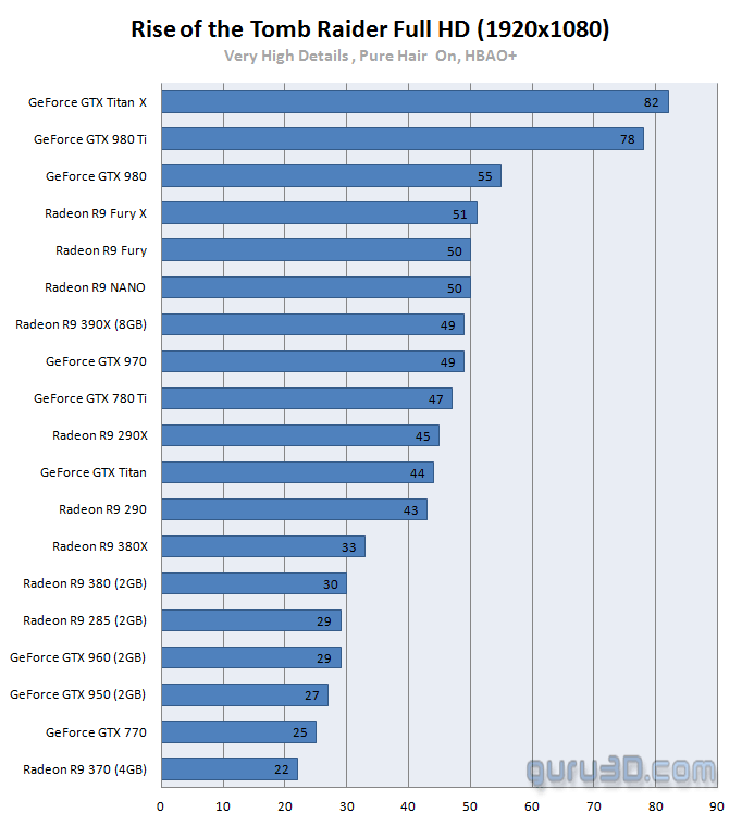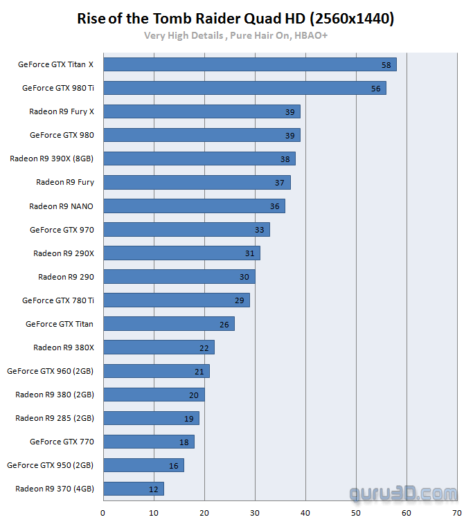 Оригинальный материал можно найти тут, я привожу из него лишь несколько графиков и кое-какие данные. Тесты ниже проводились на ПК с процессором Intel Core i7-5960X Extreme Edition @ 4.4ГГц на материнской плате с чипсетом X99, определённо не самая распространённая конфигурация. Управлялась система Windows 10, версия драйверов для GeForce - 361.75 WHQL, для Radeon - Crimson 16.1. Использование столь мощного ПК объясняется просто - дабы процессорная составляющая не стала препятствием для раскрытия полного потенциала тестируемых видеокарт.