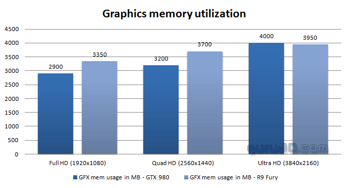 Видно, что для 4K даже 4 гигабайт мало, иначе значение не было бы столь ровным. Впрочем, 4ГБ карту можно считать оптимумом даже для Full HD, это несколько неожиданно.