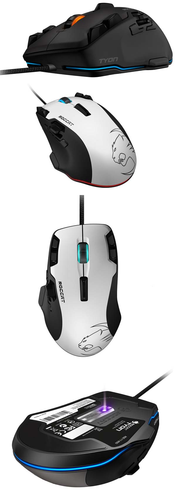 Устройство получило имя Tyon, это весьма богато одарённая функционалом игровая мышь. Новинка имеет в основе лазерный сенсор AIM (R3) с разрешением 8200 точек на дюйм. Общее количество кнопок на манипуляторе равно шестнадцати, изделие может выполнять 31 различную функцию, имеет настраиваемую 16.8 млн. цветовую подсветку.