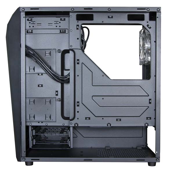 На панели ввода/вывода можно найти аудио-порты и два USB 3.0, габариты: 454.9x210x465мм, вес - 6.3КГ. Система охлаждения состоит из одного 120мм вентилятора с фронта и одного с тылу, причём последний "карлсон" имеет LED подсветку. Есть место для одного 120/140мм с фронта, а также двух на верхней стенке.
