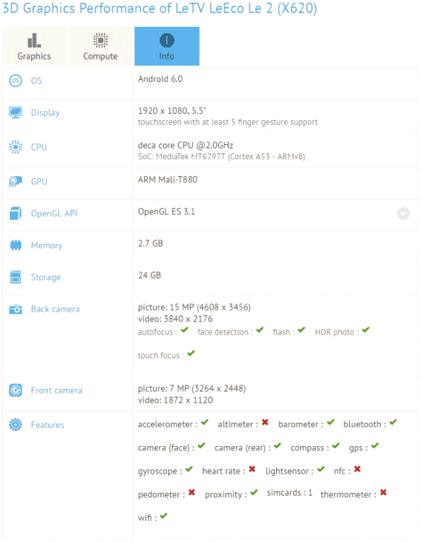 Ниж представлены сведения о фаблете Le2 от LeTV, как ни странно, решение базируется на Helio X25, хотя данная SoC должна быть эксклюзивом для Meizu некоторое время: