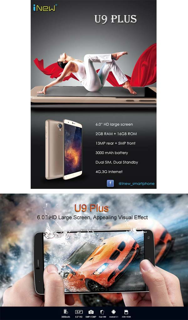 В прошлом месяце нам был показан фаблет iNew U9, теперь нам же представляют его улучшенный вариант U9 Plus. Изделие подверглось ряду апгрейдов - вместо 1ГБ оперативной и 8ГБ флеш памяти у него имеется 2ГБ оперативной памяти и 16ГБ флеш памяти. Вместо 8МП тыловой и 2МП фронтальной камер мы видим 13МП тыловую и 5МП фронтальную камеры. Разрешение 6" экрана, увы, не увеличилось и по-прежнему составляет 720p.