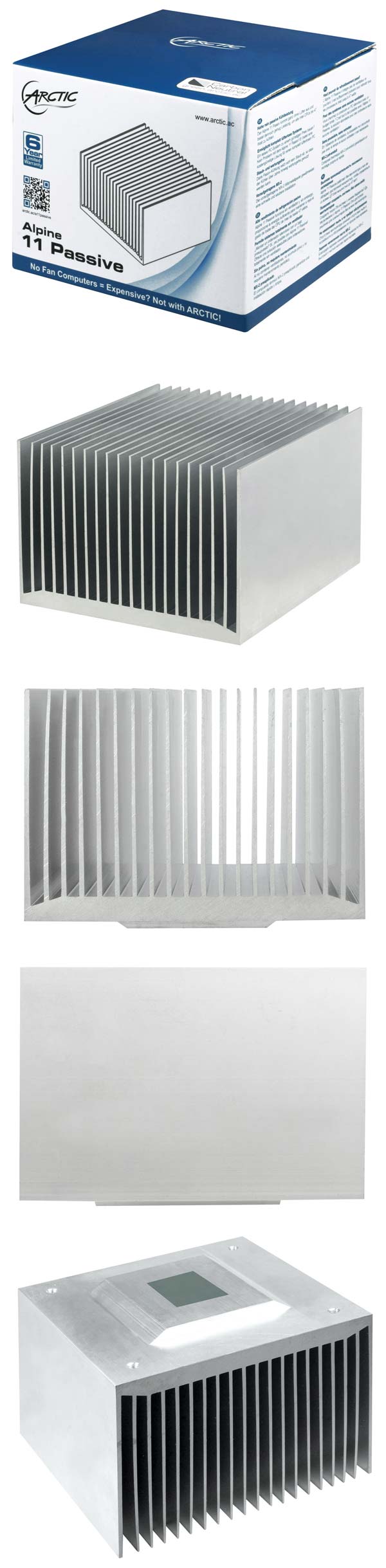 Новинка от ARCTIC называется Alpine 11 Passive, является весьма похожим на представленный ранее Alpine M1 Passive, представляет собой цельнометаллический радиатор для процессоров ПК с TDP не более 48 ватт. Новинка имеет размеры 95x95x69мм, весит 508 граммов, поставляется с нанесённой термопастой MX2, совместима с процессорами Intel LGA1150, 1151, 1155 и 1156. Цена вопроса - 12 евро, любители бесшумных ПК средней мощности будут в восторге от этой новой системы охлаждения.