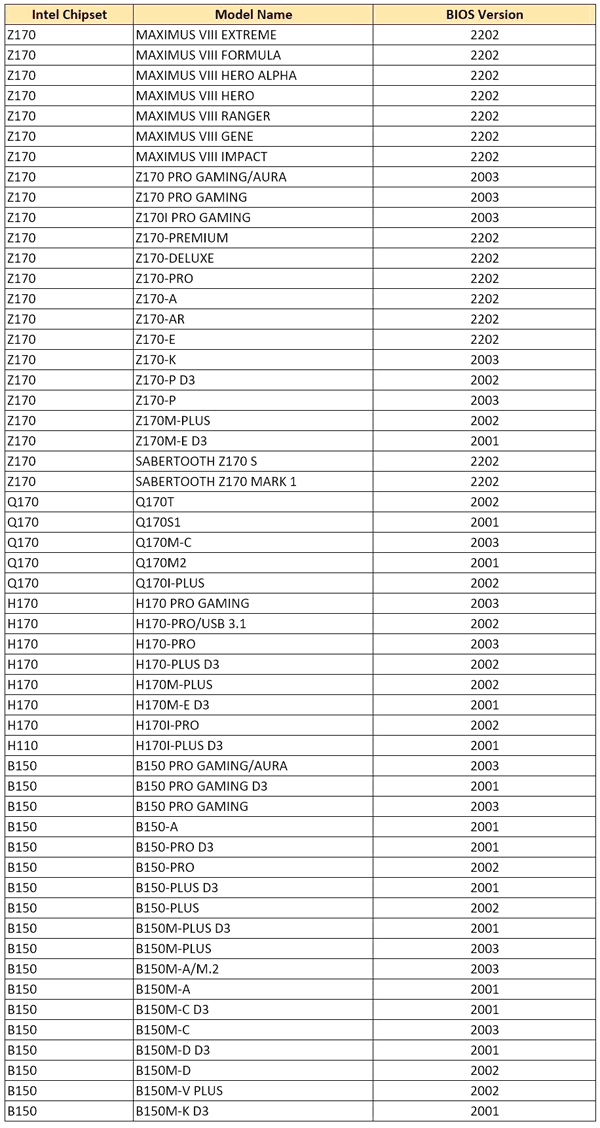 Производители материнских плат усиленно готовятся к появлению процессоров Intel Kaby Lake, поэтому не только разрабатывают и тестируют новые творения, но и обновляют старые. ASUS объявила о совместимости всех своих материнских плат на базе чипсетов 100-й серии с новинками Intel, следующий список содержит название продуктов и версию BIOS, обеспечивающую эту совместимость:
