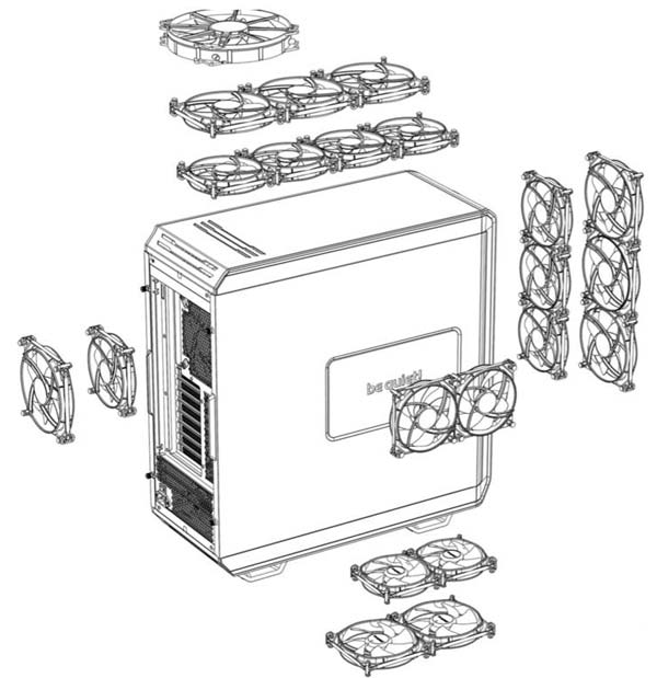 В новинки от be quiet! влезет процессорный кулер высотой до 185мм, блок питания длиной до 284мм, лимит на длину видеокарты не указан. В комплекте с корпусом поставляются три 140мм вентилятора Silent Wing 3, скорость которых можно регулировать вручную, причём возможностей для этого больше у Pro варианта корпуса - можно управлять четырьмя вентиляторами, а не тремя. Также у Pro версии есть возможность подключения лент LED подсветки, а в боковой стенке имеется большое окошко.