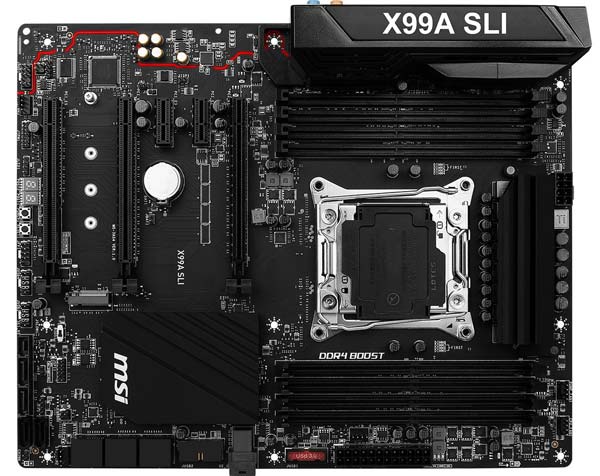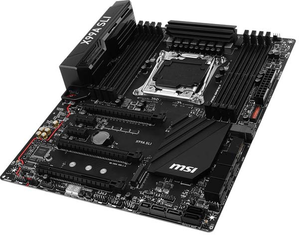 Плата X99A-SLI использует сокет LGA2011-3, получила слоты M.2 и U.2, порт USB 3.1 (10Гб/с) Type-C и Type-A, поддержку процессоров Broadwell-E, 8-фазовый VRM. Питание платы осуществляется от связки 24-пинового ATX и 8-пинового EPS коннекторов. На новинке от MSI можно найти три слота PCIe 3.0 x16 и два PCIe 2.0 x1, без обычных PCI.