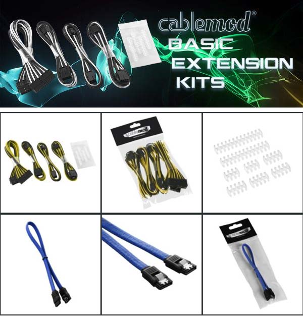 CableMod рада представить нашему вниманию нечто под названием Basic Cable Extension Kits. По-сути, это просто кабели разных цветов для компьютера. Сначала идут наборы кабелей для блока питания: