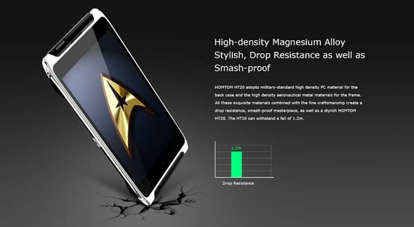 Компания Homtom поделилась данными о готовящемся к релизу смартфоне HT20. Этот аппарат относится к разряду прочных пыле/водостойких умных телефонов, имеет сертификат IP68, позволяет снимать на 13МП тыловую камеру достойные по качеству фото под водой. Решение можно ронять с высоты до 1.2 метров без боязни нанести ему какие-либо повреждения, фронтальная панель защищена стеклом Gorilla Glass, корпус сделан из применяемого в авиапромышленности металла.