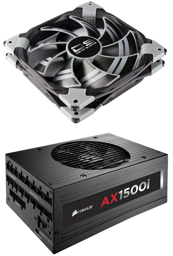 На фото вентилятор серии DeadSilence и блок питания AX1500i