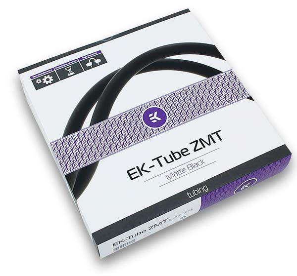EKWB сообщает, что буквы ZMT являются аббревиатурой от Zero Maintenance Tubing (шланги, не требующие обслуживания), изготавливаются из этилен-пропиленового каучука промышленного качества, цвет - чёрный, поверхность матовая. Решение не требует замены и обслуживания в течении очень долгого времени, поэтому придётся по вкусу тем людям, которые создают себе ПК по принципу "собрал и забыл". EK Water Block предлагает новые шланги EK-Tube ZMT в трёх размерах (диаметров), каждая длиной 3 метра, хотя для покупателей есть опция приобретения шлангов в "по-метровом" режиме.
