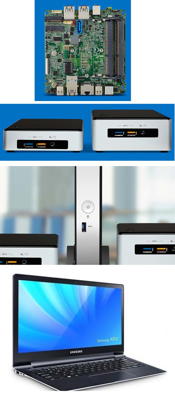 На фото показан новый NUC от Intel и ATIV Book 9 Plus от Samsung