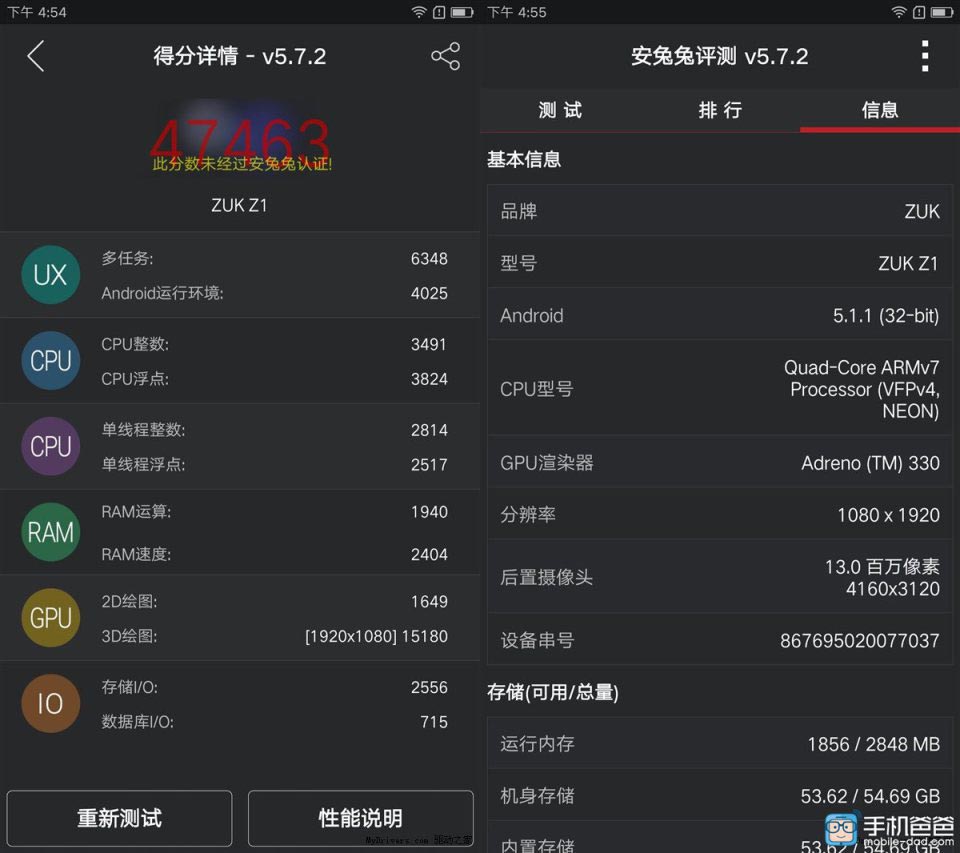 А скриншот ниже демонстрирует результат забега новейшего фаблета ZUK Z1 в AnTuTu Benchmark: