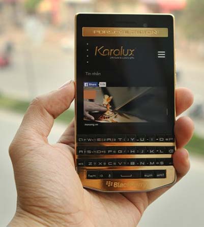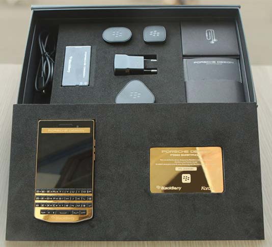А ниже показан инкрустированный золотом знакомый нам аппарат BlackBerry Porsche Design P'9983:
