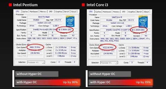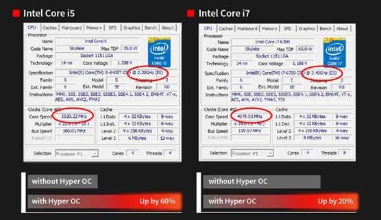 А вот промо-материалы, демонстрирующие нам технологию HyperOC, являющуюся аналогом показанной недавно ASRock Sky OC и того же самого, но без особого названия от MSI: