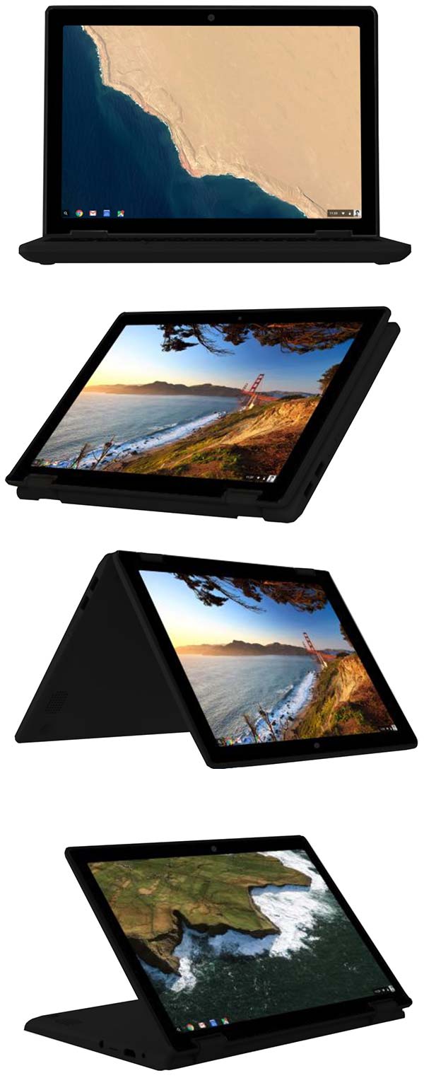 Флеш памяти eMMC типа в наличии 16 гигабайт, её можно расширить вдвое. Как и заведено, новинка дружит с WiFi и Bluetooth, имеет видеовыход HDMI, веб-камеру, слот для карточек microSD, да парочку портов USB 3.0. На корпусе хромбука также можно обнаружить выход на наушники и вход для микрофона, есть и изделия и динамик.