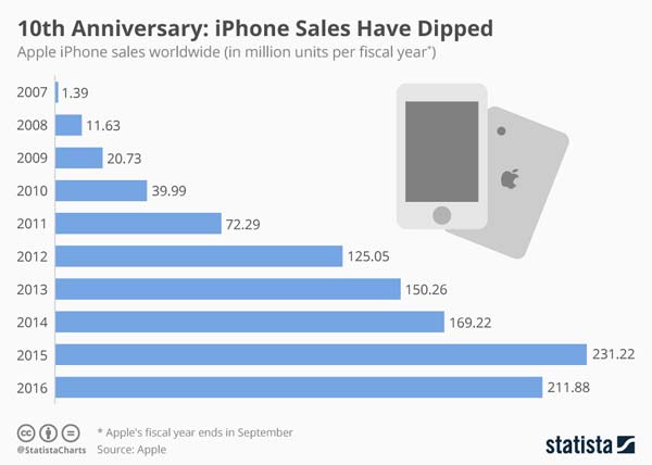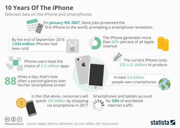 Вчера Apple отмечала 10-летие iPhone, поэтому поделилась с общественностью следующими слайдами (интересные факты и статистика):